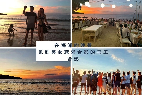 離開“海上游玩基地”,我們前往夢(mèng)幻海灘,路上“妖嬈二人組”奉獻(xiàn)了一組假裝有八塊腹肌的照片,我只能冒死表示欣賞不了,還好前方的夢(mèng)幻海灘清洗了我們的眼睛。