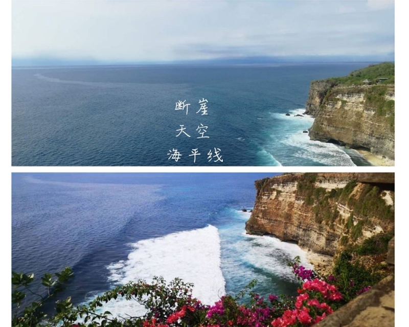 烏魯瓦圖斷崖位于巴厘島的最南端,是我們此行的最后一站,沿途的猴子據(jù)說會(huì)搶游客的帽子和眼鏡,讓我們一路有些忐忑,生怕遭遇這些“劫匪”。當(dāng)我們終于站在斷崖的最高處,遠(yuǎn)處海平線和天相接,海色融于天空,在別處很難看到如此開闊的海平線,頗為壯觀。而斷崖下水石相搏,浪花翻涌,又別是一番景致。大家紛紛駐足拍照,而見到金發(fā)美女就求合影的馬工更是沒有放過這個(gè)絕好的機(jī)會(huì),和三位美女留影合照,熾烈的陽光下,馬工漆黑的膚色優(yōu)勢(shì)仿佛也沒成功搶鏡。