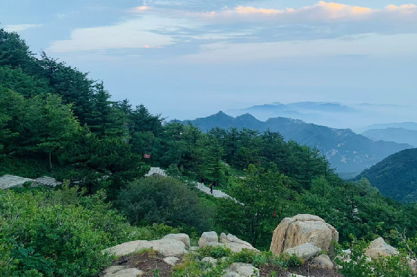 將近傍晚時(shí)分,天色似被一只無形的大手,緩緩地揉進(jìn)了灰暗的色調(diào)。山間的風(fēng),也裹挾著絲絲涼意,穿梭于林葉之間,我們一行人,于這漸暗的天色中艱難匯合。每個(gè)人的臉上都帶著攀登后的疲憊,卻又難掩眼中那股興奮與期待交織的光芒。稍作整頓,便又毅然決然地繼續(xù)朝著那高聳入云的玉皇頂上行。