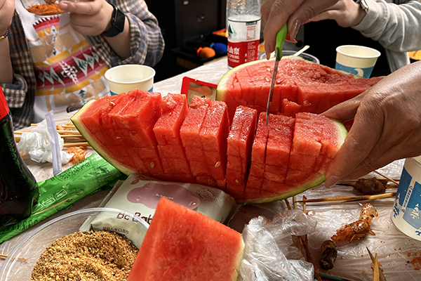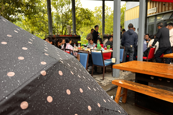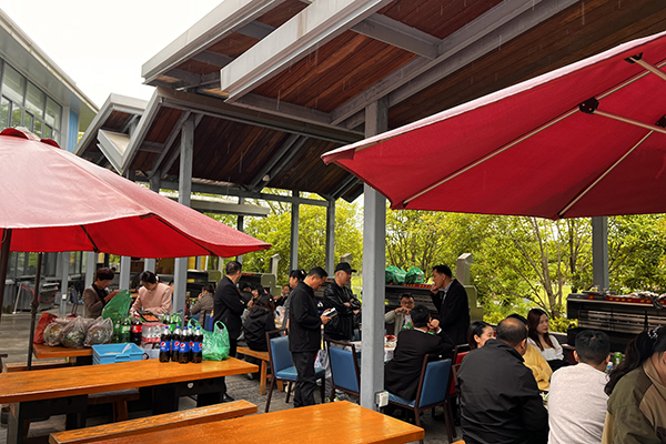 同事們圍坐在一起,分享著美食與歡笑。雨水打在樹葉上,發(fā)出沙沙的聲響,仿佛是大自然的和聲,為我們的聚會(huì)增添了幾分浪漫與詩意。雨水似乎也被我們的歡樂感染,輕輕地拍打著地面,仿佛在為我們鼓掌。